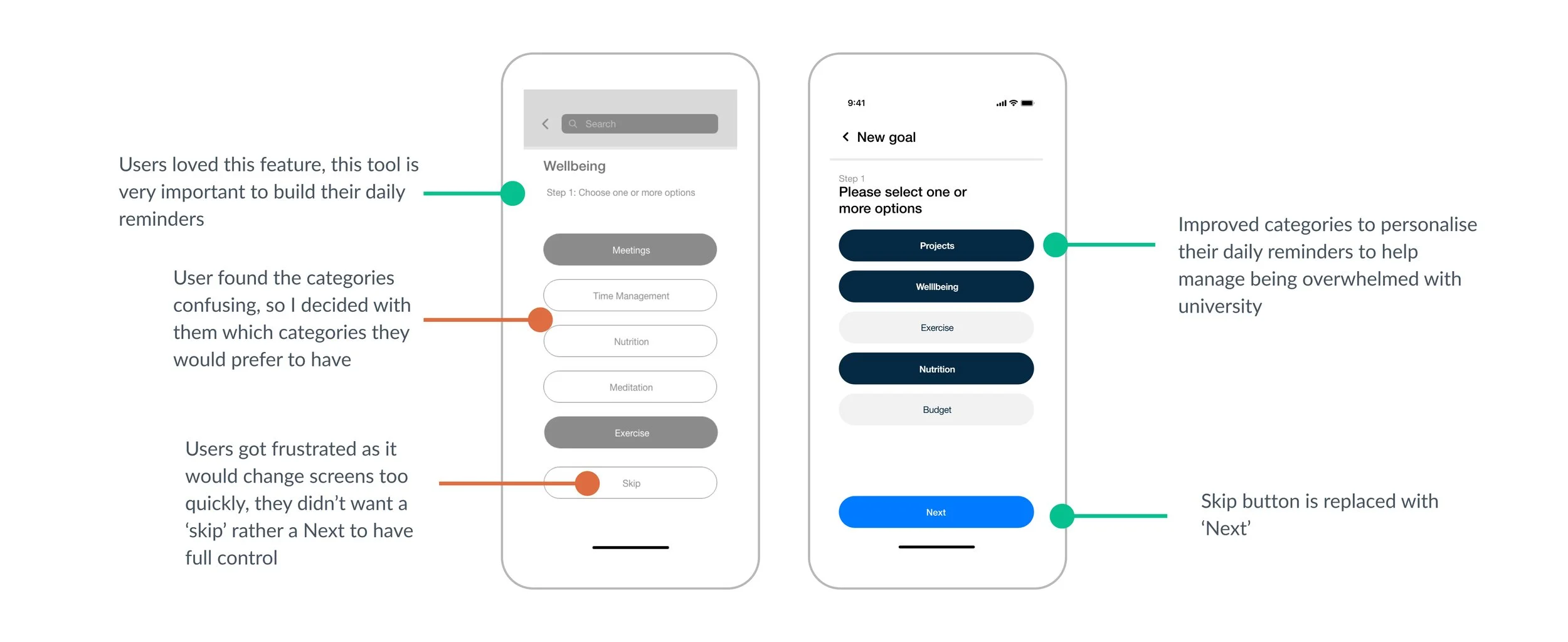 The user tests were to determine any pain points in usability and if there was anything they would change to make it more visually appealing and intuitive.